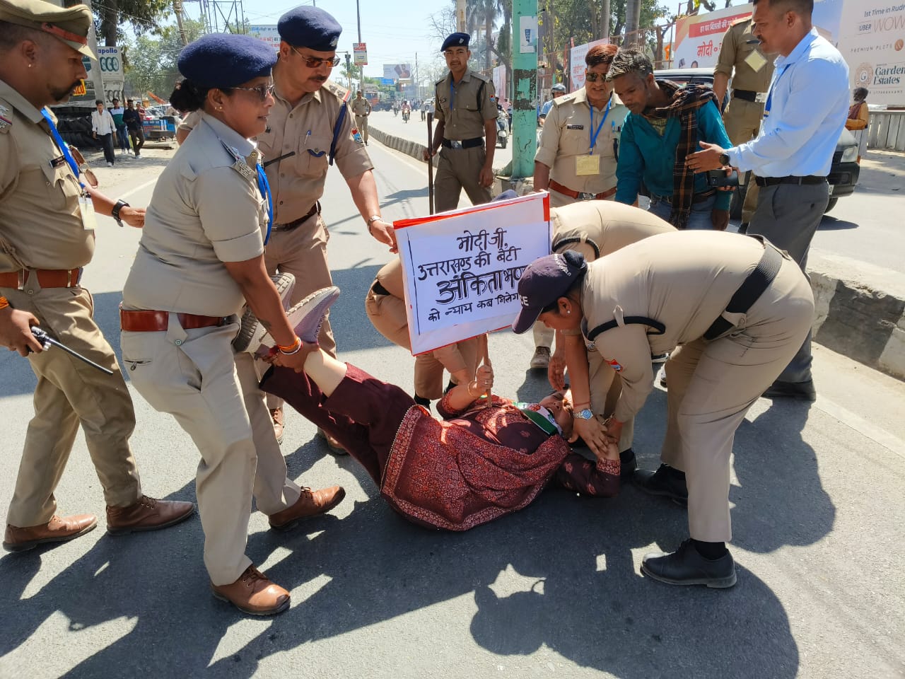 उल्लेखनीय है कि महिला कांग्रेस की प्रदेश अध्यक्ष ज्योति रौतेला उत्तराखंड की बेटी अंकिता भंडारी को अभी तक न्याय न मिल पाने से प्रधानमंत्री मोदी जी का ध्यान इस तरफ आकर्षित कराना चाहती थींl उनका कहना है कि प्रधानमंत्री नरेंद्र मोदी कई बार उत्तराखंड आए, लेकिन उत्तराखंड की बेटी अंकिता भंडारी को अभी तक न्याय नहीं दिला पाए और न ही उन्होंने इस तरफ ध्यान दिया। आज प्रधानमंत्री के रुद्रपुर आगमन से पूर्व उत्तराखंड प्रदेश महिला कांग्रेस कमेटी की अध्यक्ष ज्योति रौतेला और वरिष्ठ उपाध्यक्ष श्रीमती मीना शर्मा सहित महानगर अध्यक्ष मोनिका ढाली जैसे ही अंकिता भंडारी को न्याय दिलाने की मांग को लेकर डीडी चौक पहुंची, वहां तैनात पुलिस ने उनको गिरफ्तार कर लिया l इस दौरान महिला कांग्रेस की प्रदेश अध्यक्ष ज्योति रौतेला की पुलिस से काफी नोक झोंक भी हुई l यहां प्रदेश अध्यक्ष रौतेला, मीना शर्मा और मोनिका ढाली ने प्रधानमंत्री गो बैक के नारे भी लगाए l