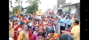 शोभायात्रा में सबसे आगे भगवा थामे हुए विभिन्न हिंदू संगठनों के पदाधिकारी चल रहे थे। समाजसेवी सुशील गाबा, रोशन अरोरा गोपाल पटवारी ने क्षेत्र के गणमान्य समाजसेवियों के साथ शोभा यात्रा का फूलों की वर्षा कर भव्य स्वागत किया, प्रभु की आरती उतारकर वंदन किया।
