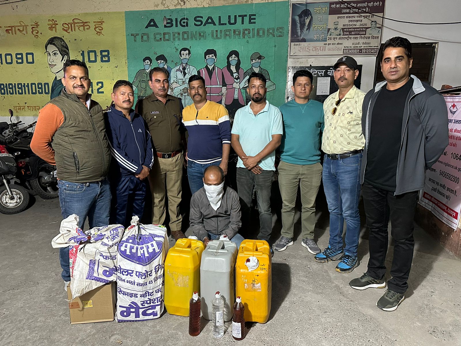 उत्तराखंड एसटीएफ द्वारा थाना मुखानी व आबकारी विभाग की टीम को साथ लेकर संयुक्त कार्यवाही में फैक्ट्री के अन्दर से भारी मात्रा में नकली शराब , कैमिकल, रॉ मटैरियल व उपकरण बरामद ।