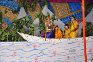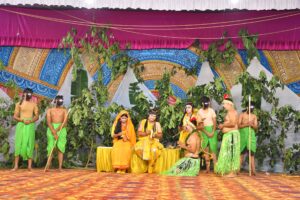 द्रपुर। नगर की प्रमुख बस अड्डे वाली रामलीला में आज सुमंत की वापसी, राम की भील राजा गुह से भेंट, राम केवट संवाद, दशरथ मरण तक की लीला का भावपूर्ण व सुंदर मंचन हुआ। आज दीप प्रज्जवलन नगर के समाजसेवी एवं उघोगपति, आर्म इंडिया के प्रबंध निदेशक मुकेश सिंह नें किया। श्रीरामलीला कमेटी ने सभी अतिथियों का माल्यार्पण कर, शाल ओढ़ाकर एवं श्री गणेश जी की प्रतिमा देकर सम्मानित किया।