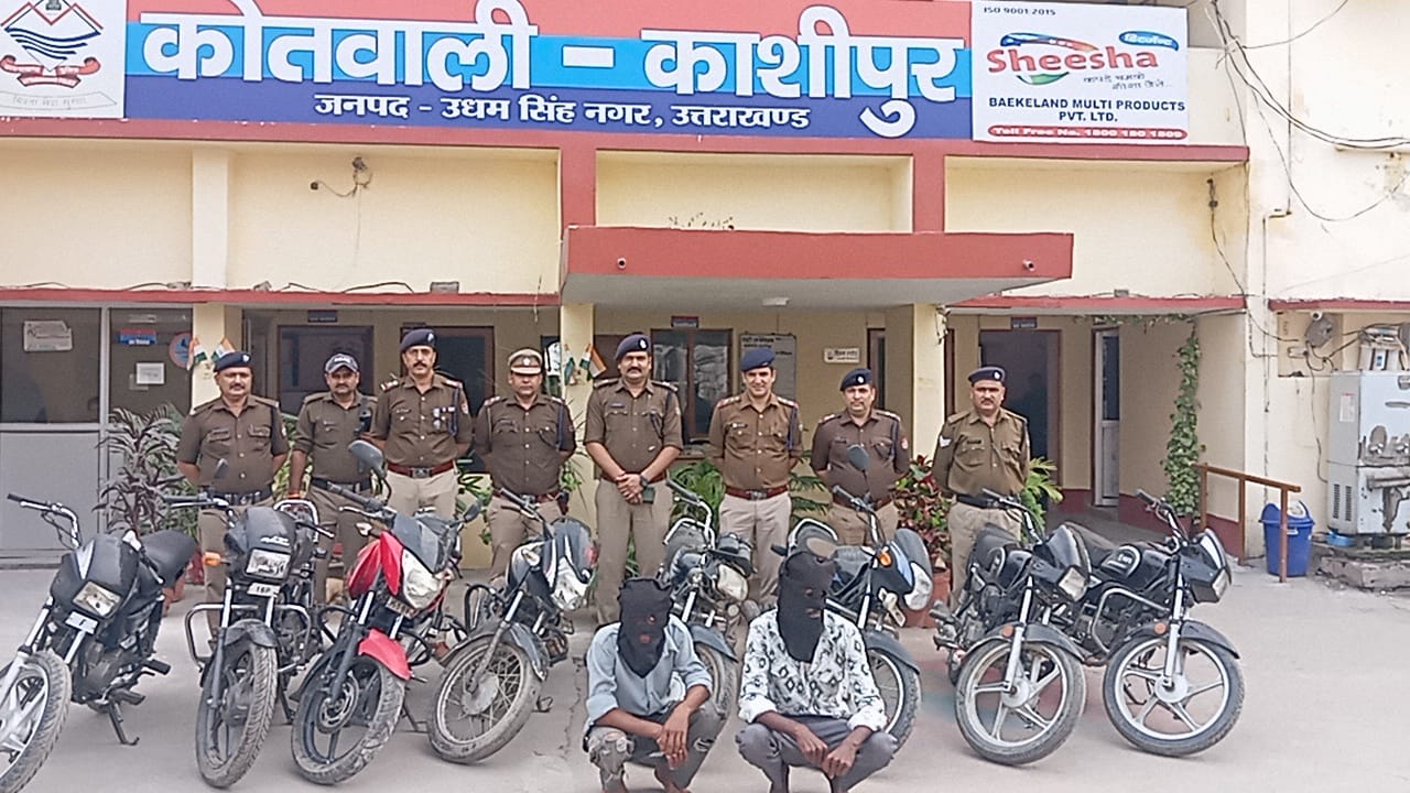 काशीपुर। आठ मोटर साईकिल, एक आईफोन और दो चाकू के साथ काशीपुर पुलिस ने 02 शातिर चोर गिरफ्तार किए।