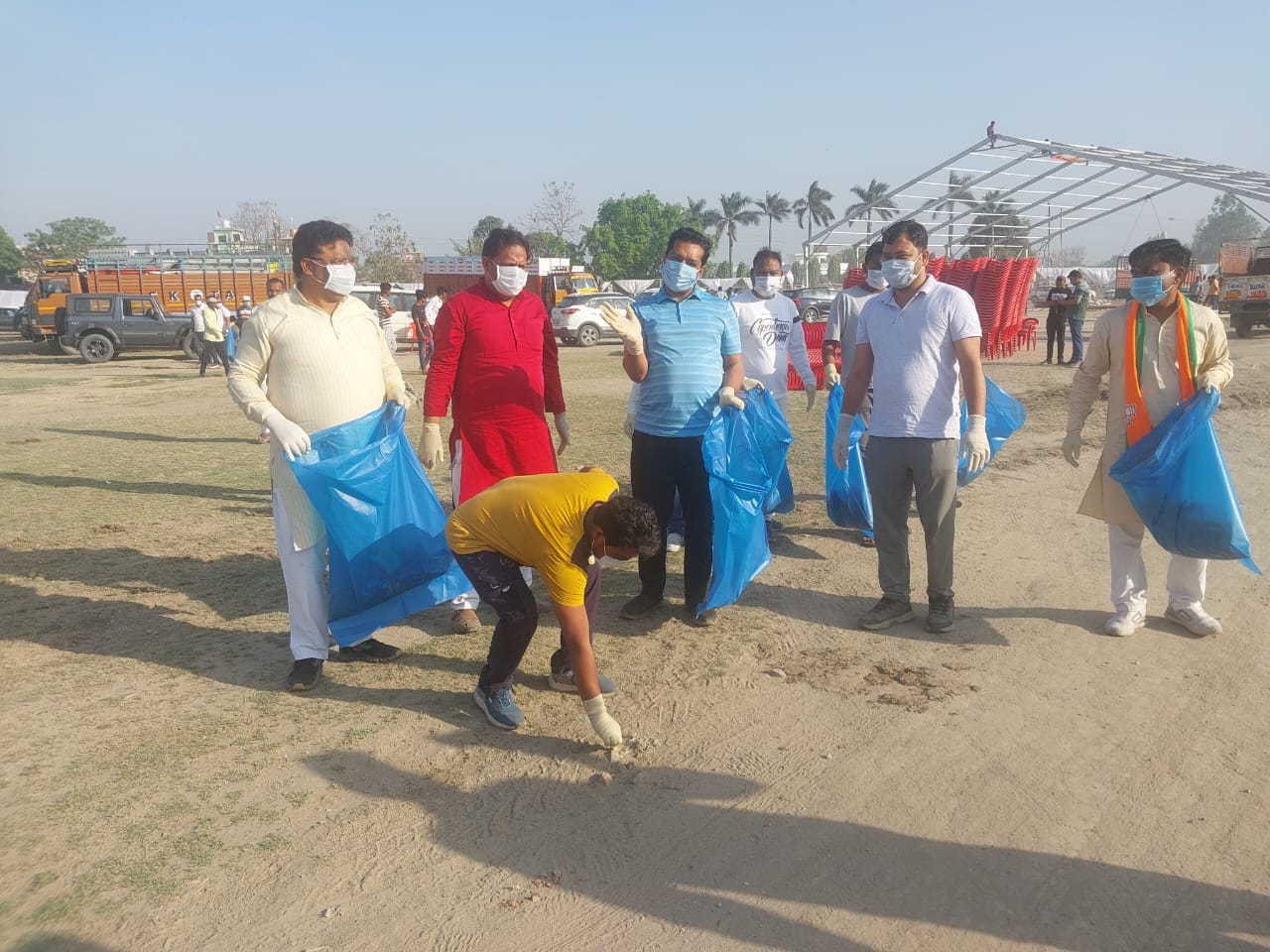 रुद्रपुर। प्रधानमंत्री नरेन्द्र मोदी की दो अप्रैल को होने जा रही शंखनाद रैली को लेकर भाजपा कार्यकर्ताओं ने सोमवार को मोदी मैदान के आस पास स्वच्छता अभियान चलाकर लोगों स्वच्छता के लिए जागरूक किया और लोगों से अधिक से अधिक संख्या में रैली में पहुंचने की अपील भी की।