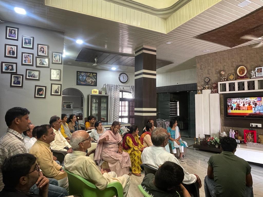 रुद्रपुर। प्रधानमंत्री नरेन्द्र मोदी के मन की बात के 100 वें एपिसोड को सुनने के लिए समस्त भाजपा पदाधिकारियों व कार्यकर्ताओं के साथ ही आम जनता में काफी उत्साह देखा गया। यहां भूरारानी वार्ड 32 के बूथ संख्या 161 में मंडी समिति के पूर्व अध्यक्ष बल्देव छाबड़ा के आवास पर भारी संख्या में पार्टी पदाधिकारियों, कार्यकर्ताओं व क्षेत्रवासियों ने एकाग्रचित होकर प्रधानमंत्री नरेन्द्र मोदी के मन की बात को सुना। श्री मोदी ने इस दौरान कई लोगों से बातचीत भी की।