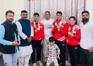 रुद्रपुर। 26 अक्तूबर से 09 नवंबर तक गोवा में संपन्न हुये 37वें राष्ट्रीय खेलों में पेंचक सिलाट के 07 महिला एवं पुरुष खिलाड़ियों ने प्रतिभाग किया, प्रतियोगिता में श्रेष्ठ प्रदर्शन करते हुए एक स्वर्ण और 03 कांस्य पदक उत्तराखण्ड प्रदेश को दिलाए, आज पूर्व विधायक राजेश शुक्ला एवं मेयर रामपाल सिंह ने सभी पदक विजेता खिलाड़ियों को अपने अपने आवास पर सम्मानित किया।