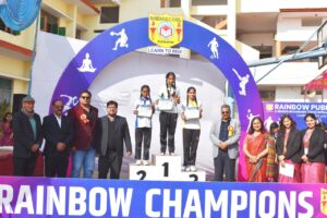 रुद्रपुर। शहर के सुपरिचित ‘रेनबो पब्लिक स्कूल’ में विगत वर्षों की भाँति खेल दिवस का आयोजन किया गया, जिसमे वर्ष भर की सम्पन्न हुई विभिन्न चरणों की खेल प्रतियोगिताओं में विजयी खिलाड़ियों को मेडल पहनाकर एवं ट्रॉफी प्रदान कर प्रोत्साहित किया गया।