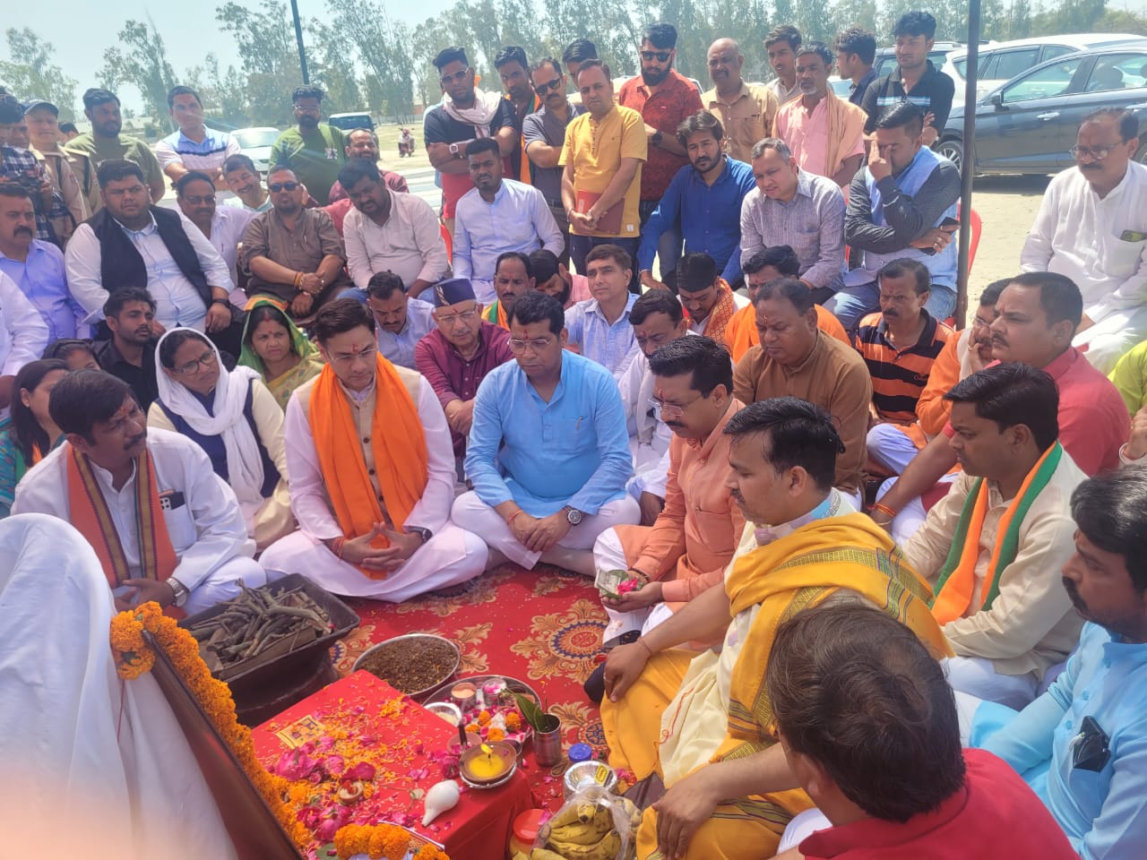 रुद्रपुर । जिला मुख्यालय पर मोदी मैदान में 2 अप्रैल को प्रस्तावित प्रधानमंत्री नरेन्द्र मोदी की शंखनाद रैली की सफलता के लिए भाजपाइयों ने रविवार को मोदी मैदान में हवन यज्ञ कर कार्यक्रम निर्विध्न सम्पन्न होने की कामना की।
