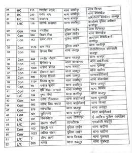 इसके अलावा बड़ी संख्या में पुलिस कर्मियों को इधर से उधर किया गया है, पढ़िए पूरी सूची।