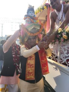 रुद्रपुर। वरिष्ठ भाजपा नेता एवं समाजसेवी भारत भूषण ने आज अंतरराष्ट्रीय कृष्ण भावनामृत संघ इस्कॉन स्थानीय इकाई द्वारा आयोजित श्री श्री कृष्णा बलराम शोभा यात्रा महामहोत्सव में शामिल होकर भगवान श्री कृष्ण का आशीर्वाद प्राप्त किया।