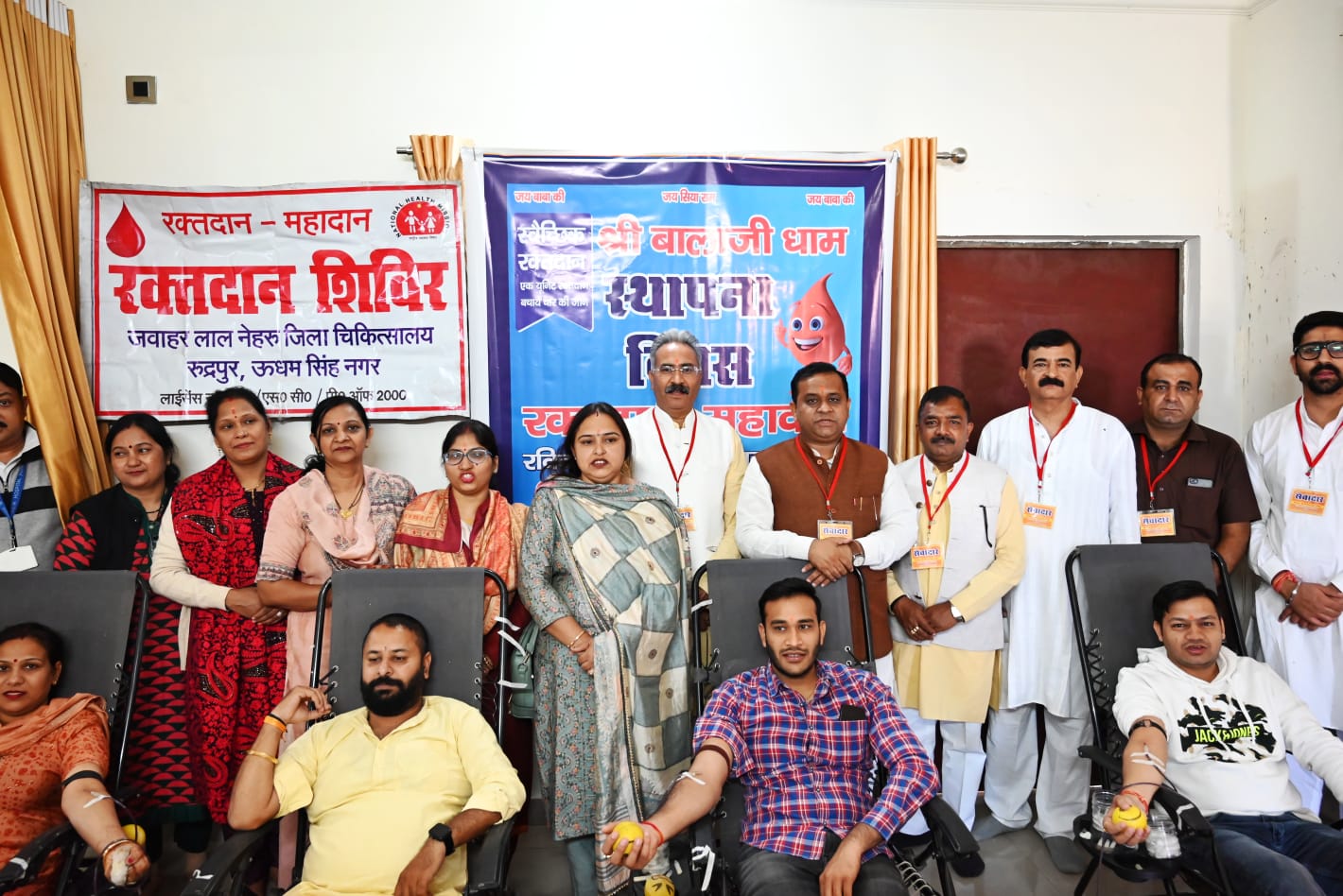रविवार को रक्तदान शिविर का शुभारंभ ब्लाक प्रमुख ममता जल्होत्रा और श्री बाला जी चैरिटेबल ट्रस्ट के अध्यक्ष विजय भूषण गर्ग द्वारा संयुक्त रूप से किया। इस दौरान उन्होंने कहा कि बड़े ही सौभाग्य की बात है कि बालाजी धाम स्थापना दिवस पर रक्तदान का आयोजन किया और इस रक्तदान में बाबा भक्तों ने रक्तदान कर पुण्य प्राप्त किया, क्योंकि रक्त की एक बूंद जिंदगी ले भी सकती है और एक बूंद जिंदगी बचा भी सकता है। रक्त दान कर जरूरतमंदों को बचाना ही इंसानियत है। उन्होंने कहा कि बालाजी धाम कमेटी का यह कदम सराहनीय है। इस दौरान अतिथियों ने बालाजी धाम में पूजा अर्चना कर सुख समृद्वि की कामना की। ट्रस्ट के सचिव पवन जिंदल ने बताया कि बालाजी धाम स्थापना दिवस को लेकर 25 नवंबर से तीन दिवसीय धार्मिक कार्यक्रमों के अलावा सामाजिक कार्यक्रम भी आयोजित किए जा रहे हैं। इसमें 25 नवंबर को बालाजी निशान यात्रा के अलावा अब 27 नवंबर को विशान दरबार और भंडारे का आयोजन किया जा रहा है। उन्होंने बाबा भक्तों को बड़ी संख्या में पहुंचने का आहवान किया। इस अवसर पर जिला अस्पताल ब्लड बैक के कर्मचारी डाक्टर पीके श्रीवास्तव, जितेंद्र सिंह बृजवाल, सतीश कुमार, अभिषेक कुमार, विवेक सिंह,अनिल कुमार, कमला यादव, निर्मला वृजवाल, भावना शर्मा द्वारा रक्तदान शिविर में चिकित्सीय व्यवस्था को संभाला। इस मौके पर रवि बठला, भाजपा नेता भारत भूषण चुघ, पवन जिंदल, सतीश हुडियां, सुरेंद्र छाबड़ा, प्रवीण सूरी, आशु ग्रोवर, रोहित राजपूत, संजय सिंधी, विवेक पूछी, गिरिश चंद्र पांडे, पुलकित गर्ग, राहुल कालड़ा, आशु नागपाल, अमित सिंघल, ऋषि भुसरी, बिटटू गोवर, सुमित बब्बर, गौरव खुराना, मुकेश घई, हर्षित ग्रोवर,मोहित जिंदल, हरीश कालड़ा, प्रीतम अरोरा, चिंतन बांबा, राकेश ग्रोवर, पंकज सेतिया, अमर पसरीचा, मुकुल दुर्गापाल, सुरेंद्र कुमार, राजेश सिंघल, उत्कर्ष पंत, प्रवीण सूरी, योगेश जोशी, अंशुल अरोरा, अमित त्यागी, सुमित अरोरा, गगन दुनेजा, प्रसन्नजीत गोलदार, राज कोहली, चंद्र कटारियां,मोहित राजपूत आदि मौजूद रहे।
