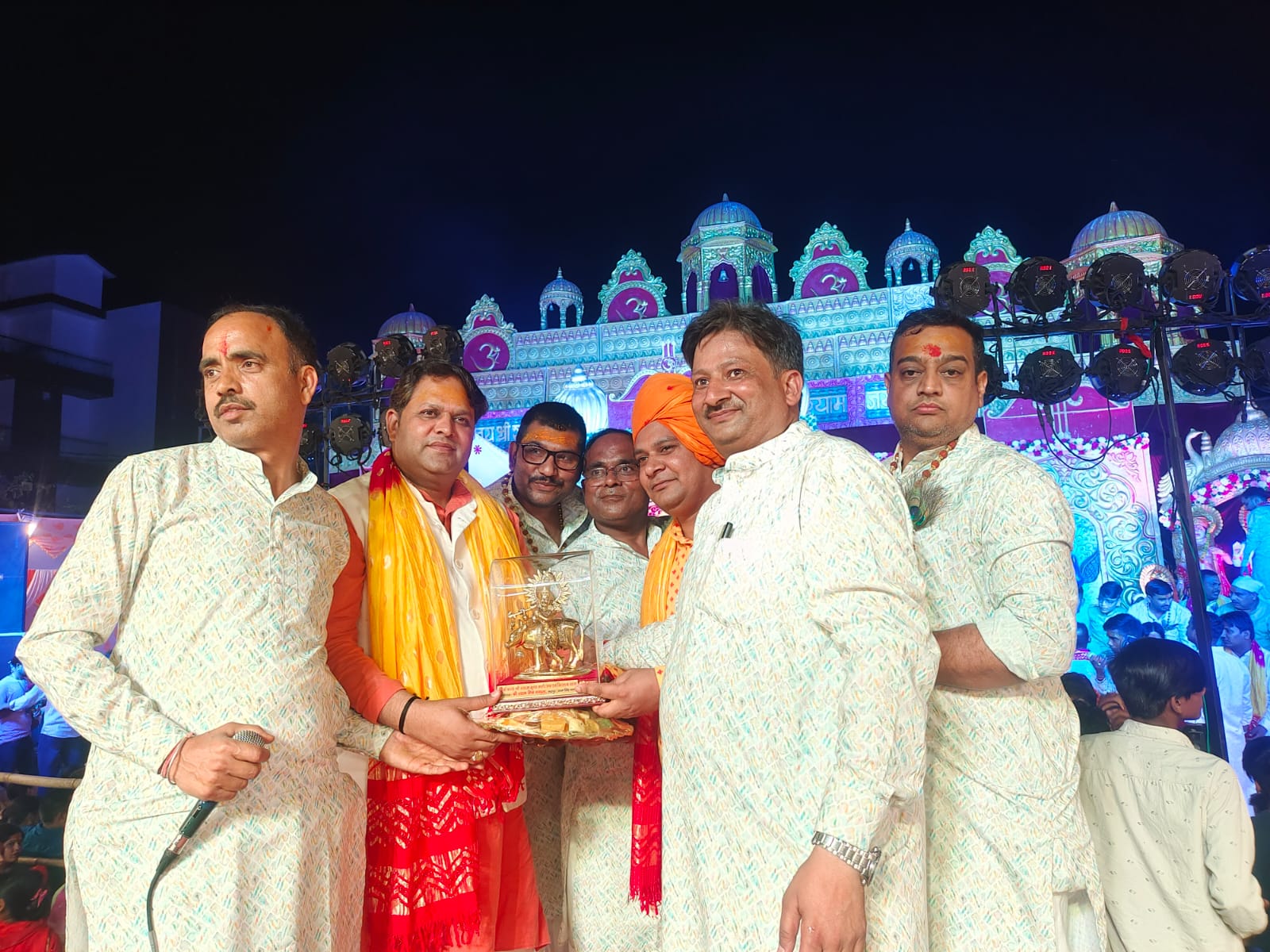 रुद्रपुर। भाजपा प्रदेश मंत्री विकास शर्मा ने गल्लामंडी में श्री श्याम मित्र मंडल द्वारा आयोजित श्री श्याम कृपा महोत्सव में पहुंचकर शीश नवाया और आशीर्वाद प्राप्त कर श्री श्याम बाबा का गुणगान सुना। इस दौरान आयोजकों ने विकास शर्मा का स्वागत करते हुए उन्हें स्मृति चिन्ह भेंट कर सम्मानित किया।