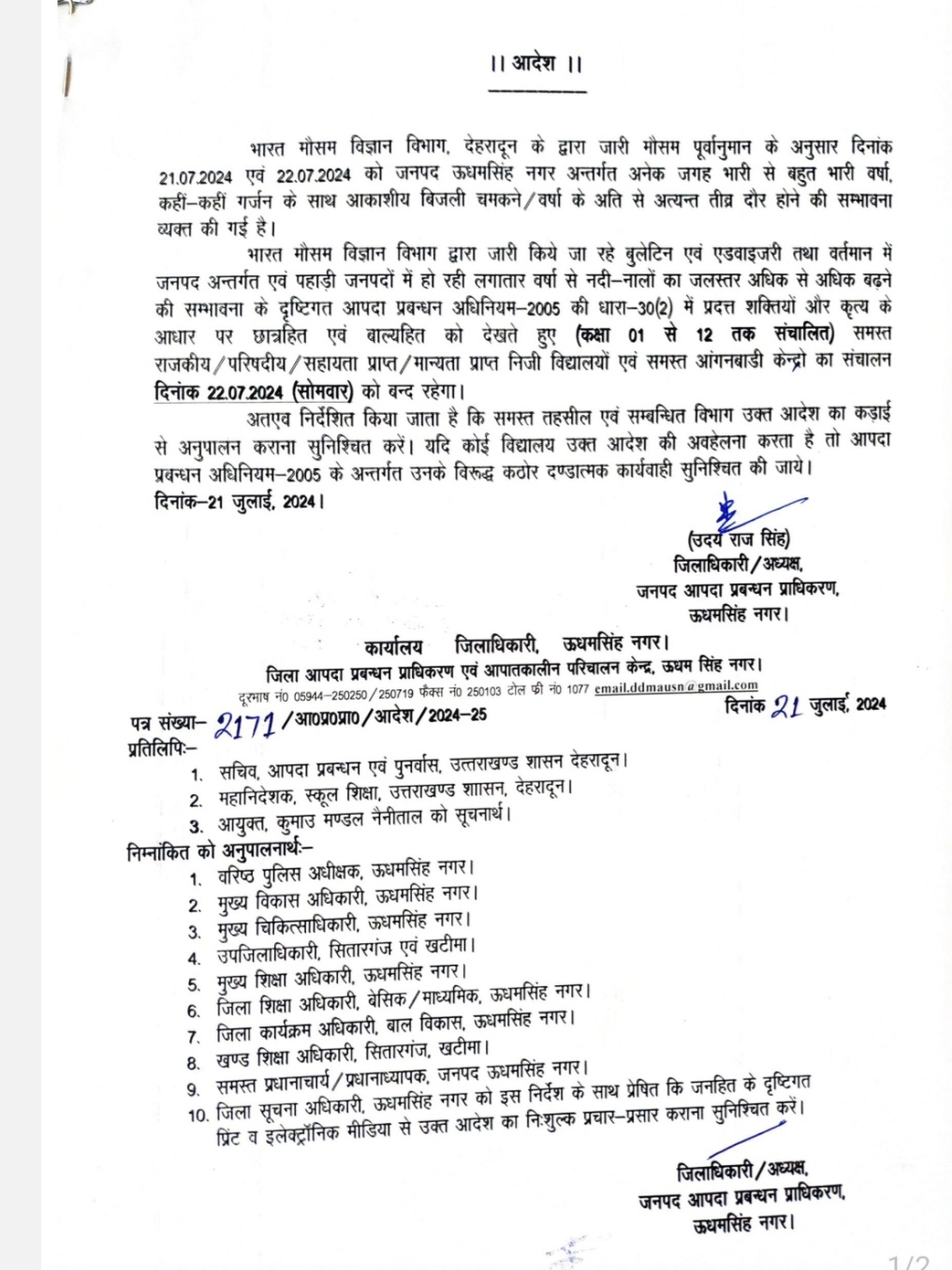 रुद्रपुर। मौसम विभाग ने भारी बारिश की चेतावनी दी है, जिसके चलते कल 22 जुलाई को जिले में कक्षा 12…