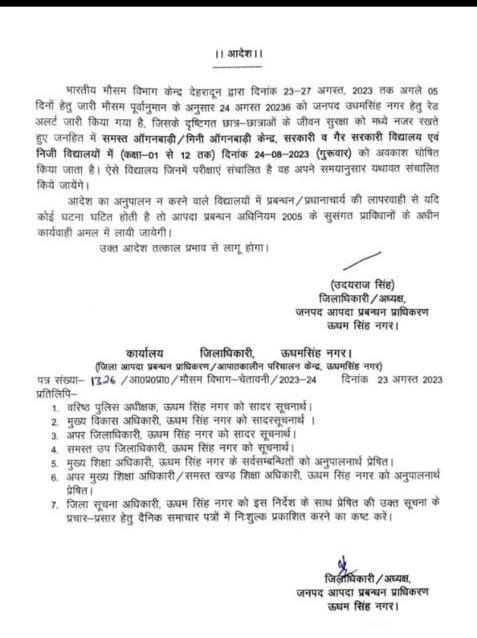 रुद्रपुर। भारतीय मौसम विज्ञान केन्द, देहरादून द्वारा दिनांक 22-26 अगस्त, 2023 तक अगले 05 दिनों हेतु जारी मौसम पूर्वानुमान के…