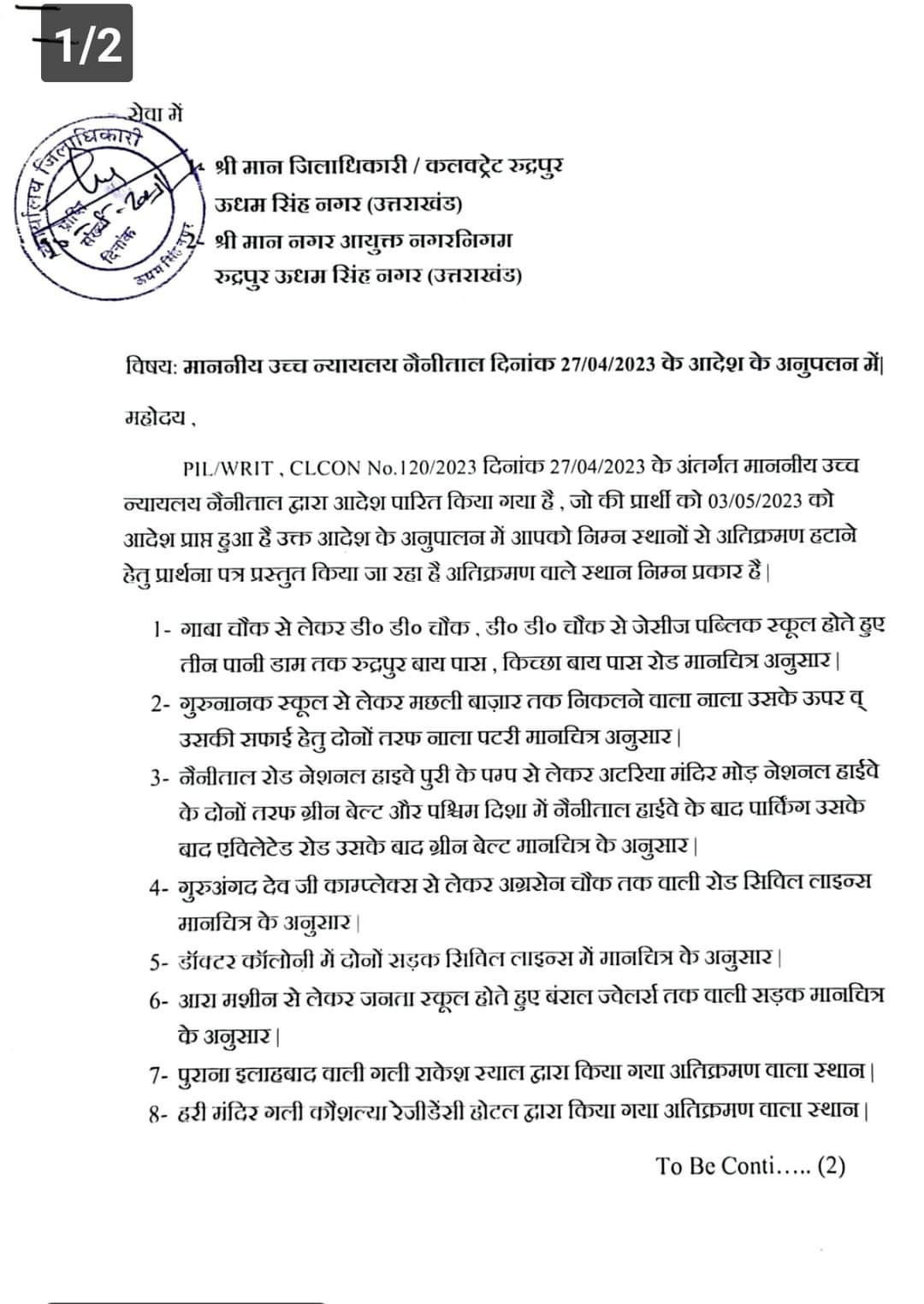 रुद्रपुर। प्रतिज्ञा द ओथ फाउंडेशन के अध्यक्ष ने जिलाधिकारी को पत्र देकर हाईकोर्ट के आदेश का अनुपालन कराने का अनुरोध…